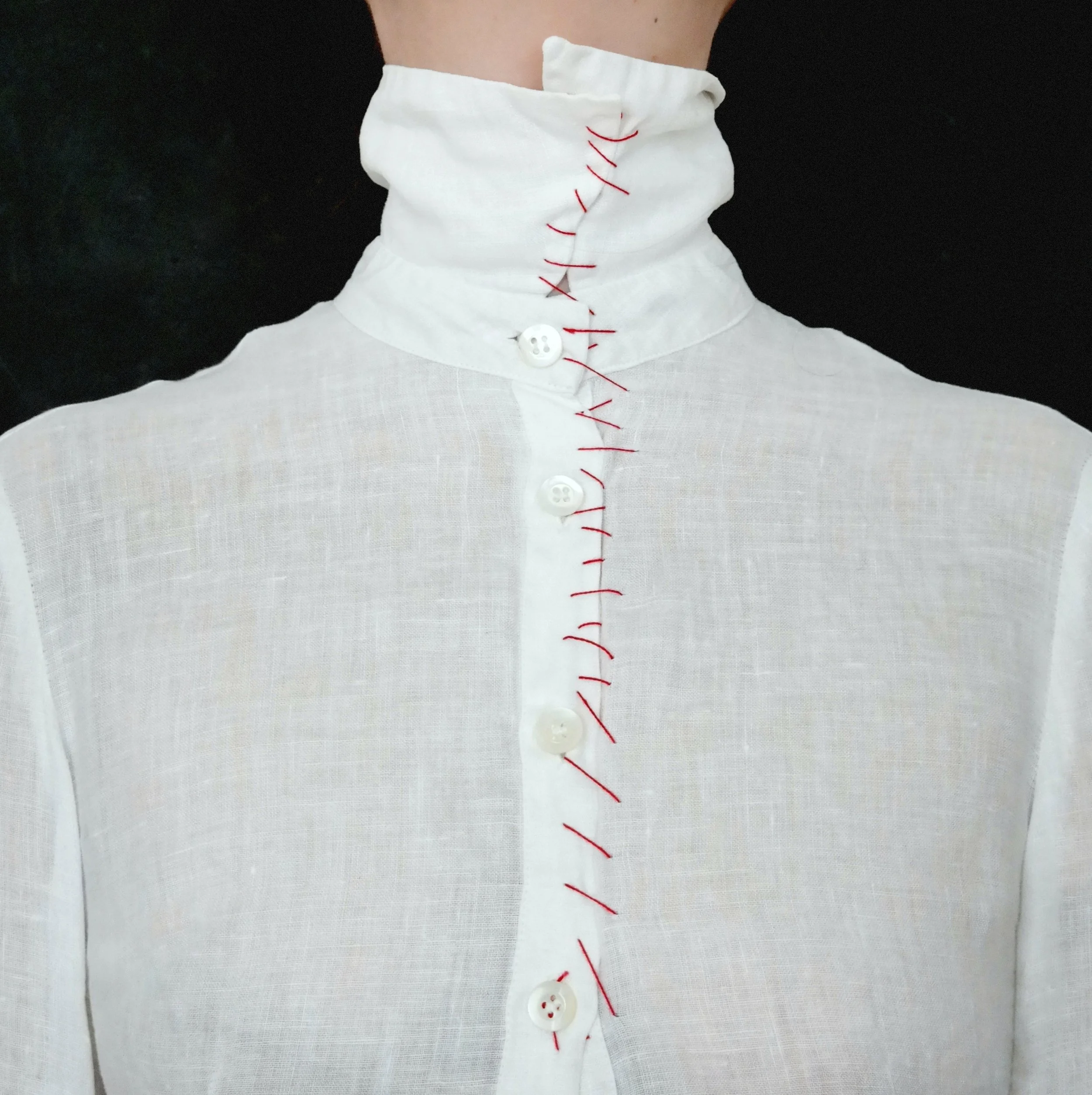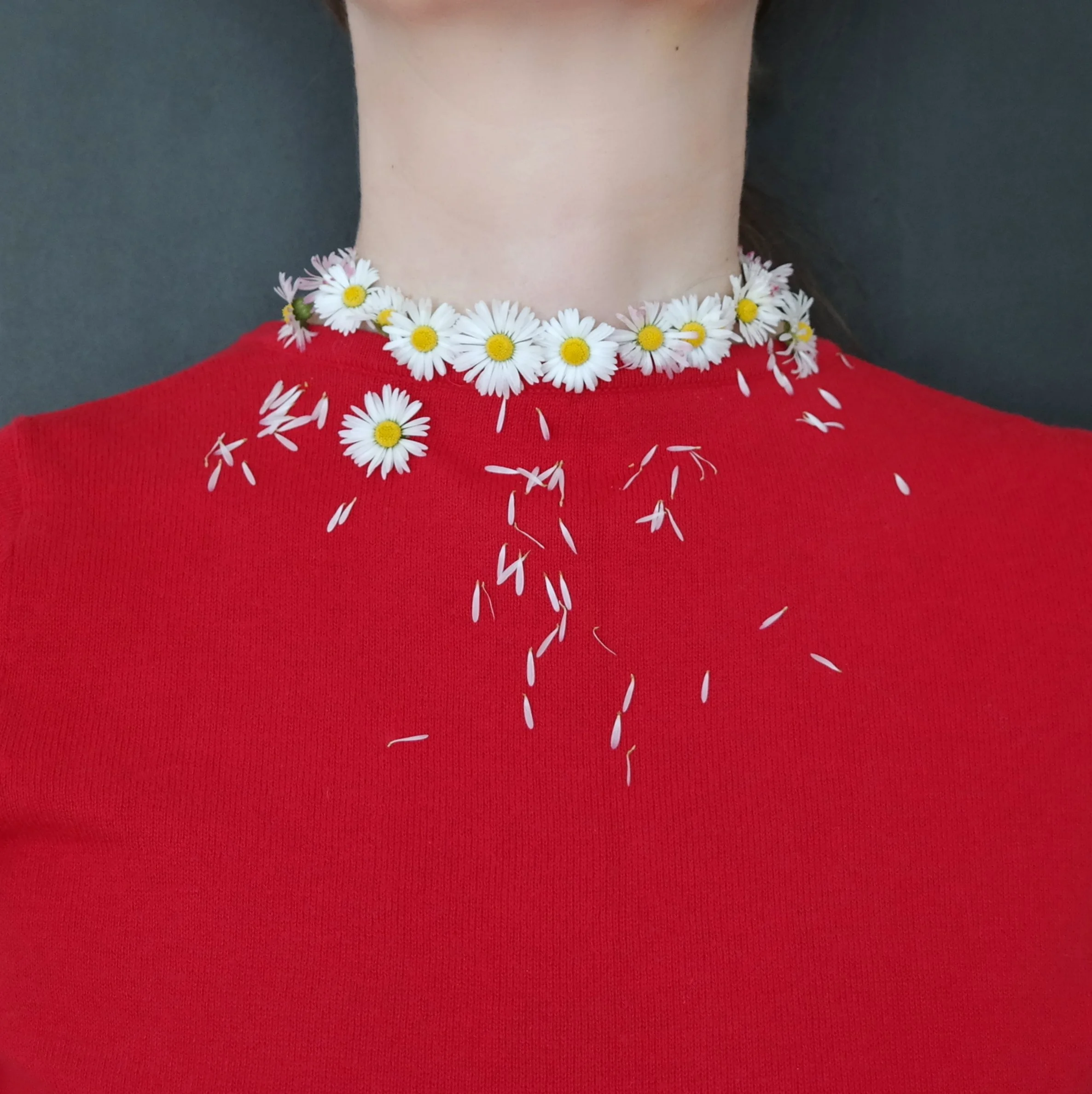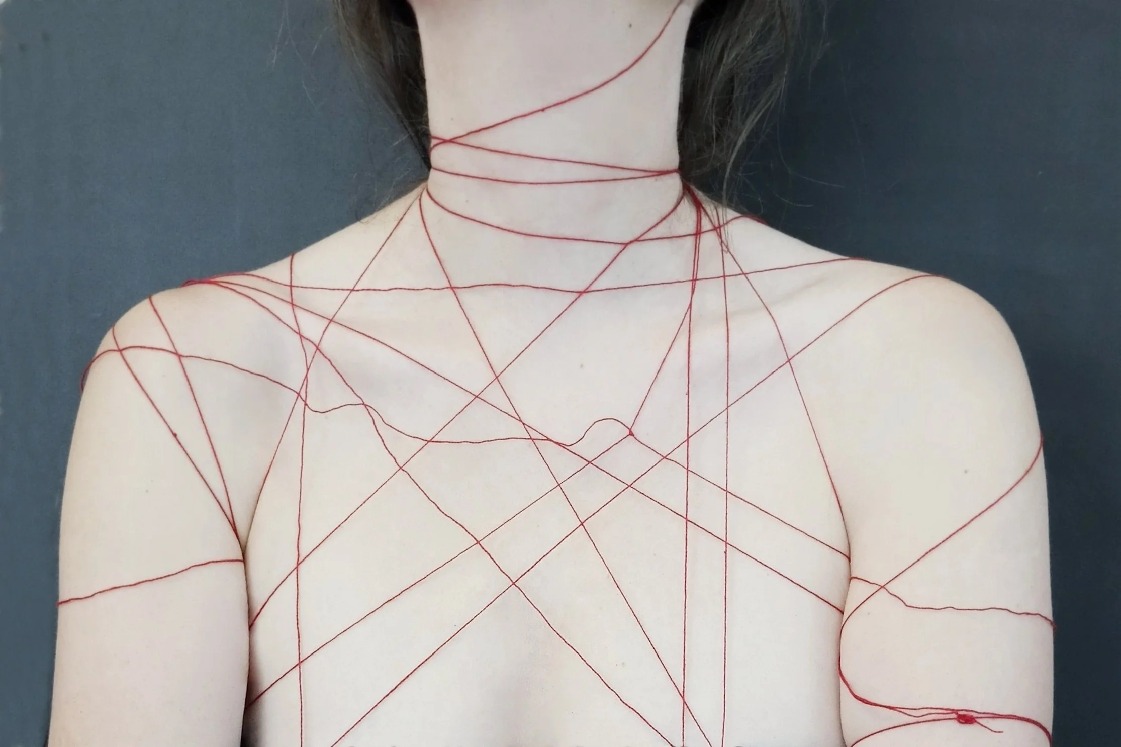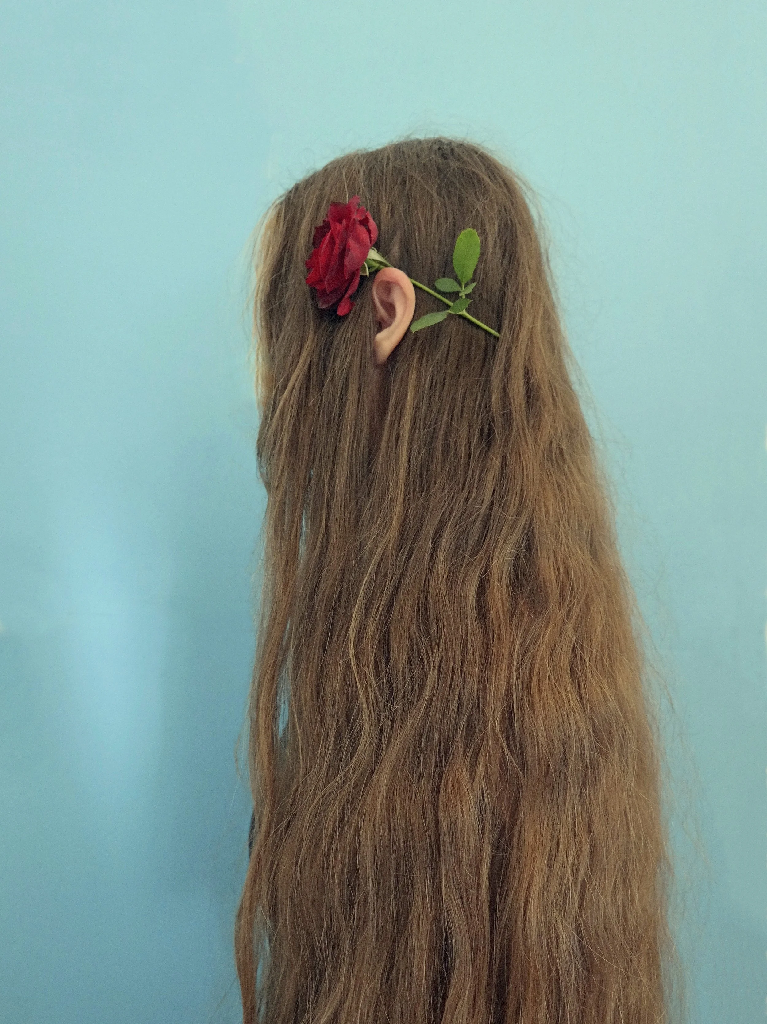 In my photos I am myself without a face, in an indefinable empty space, sometimes my hair is important, sometimes my hands, my collar, clothes, etc.. I am in my photos but the sum of the pictures don’t fully represent me. I give a moment of my own. The process is self realization, self creation, self demonstration, self expression, meditation. Meditation is dialogue, the self is talking to itself…